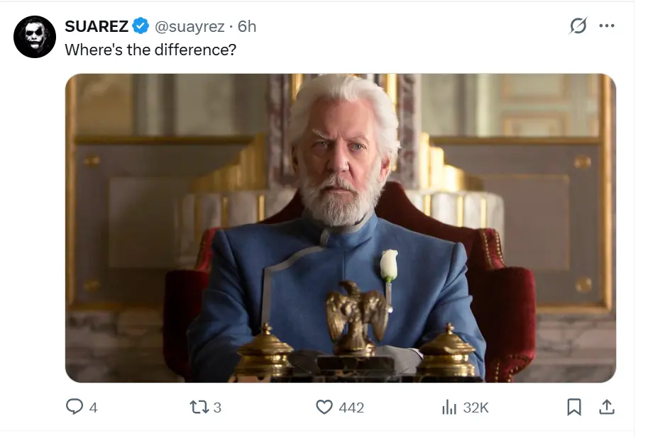 After the news broke, the official X page of The Democrats shared a clip from The Hunger Games, accompanied by a caption featuring a dialogue from the film.