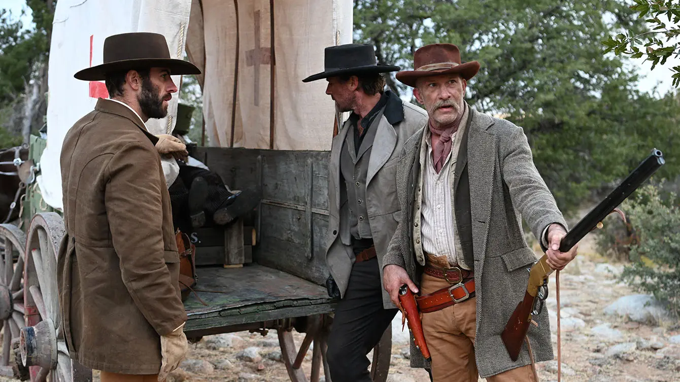 Recognizing the difficulty of the route, Merrick reluctantly joins forces with Mule, Billy, and Edmund, three outlaws more concerned with their own survival than any noble cause. The trailer highlights their strained partnership, built on necessity rather than trust. When the outlaws accidentally kill an Apache scout, the film’s central conflict erupts.