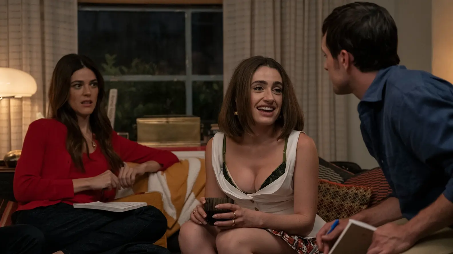 Maia’s downward slide begins long before she steps into Dylan’s living room in I Love LA season 1 episode 6. The moment she receives a handwritten invite from her former boss Ben, her behavior shifts. Their meeting is casual at first, but the familiar dynamic takes over quickly: power imbalance, subtle negging, and an intensity Maia can’t seem to resist. They drink, flirt, and slip back into unhealthy patterns that Maia convinced herself she’d left behind in New York.