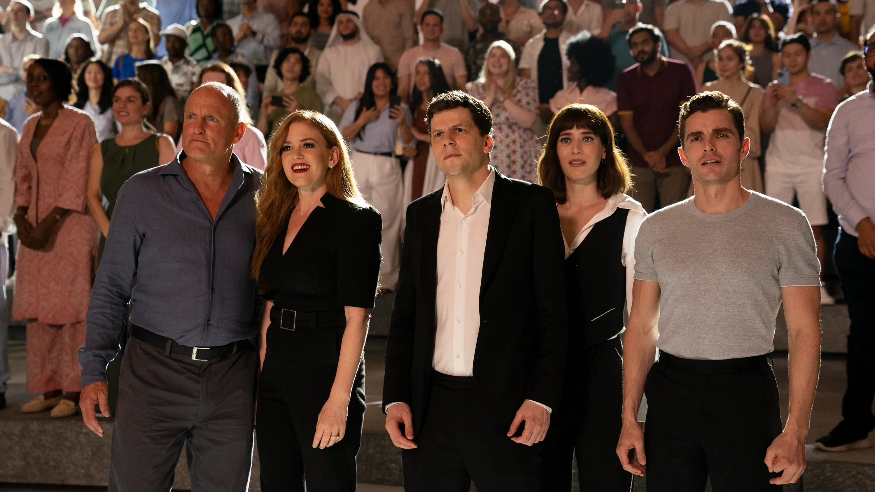 The cast for Now You See Me: Now You Don’t sees most of the members from previous instalments returning, including Jesse Eisenberg, Woody Harrelson, Dave Franco, Isla Fisher, Lizzy Caplan, and Morgan Freeman, while introducing a younger generation of illusionists played by Justice Smith, Dominic Sessa, and Ariana Greenblatt. Rosamund Pike joins as the film’s new antagonist.
