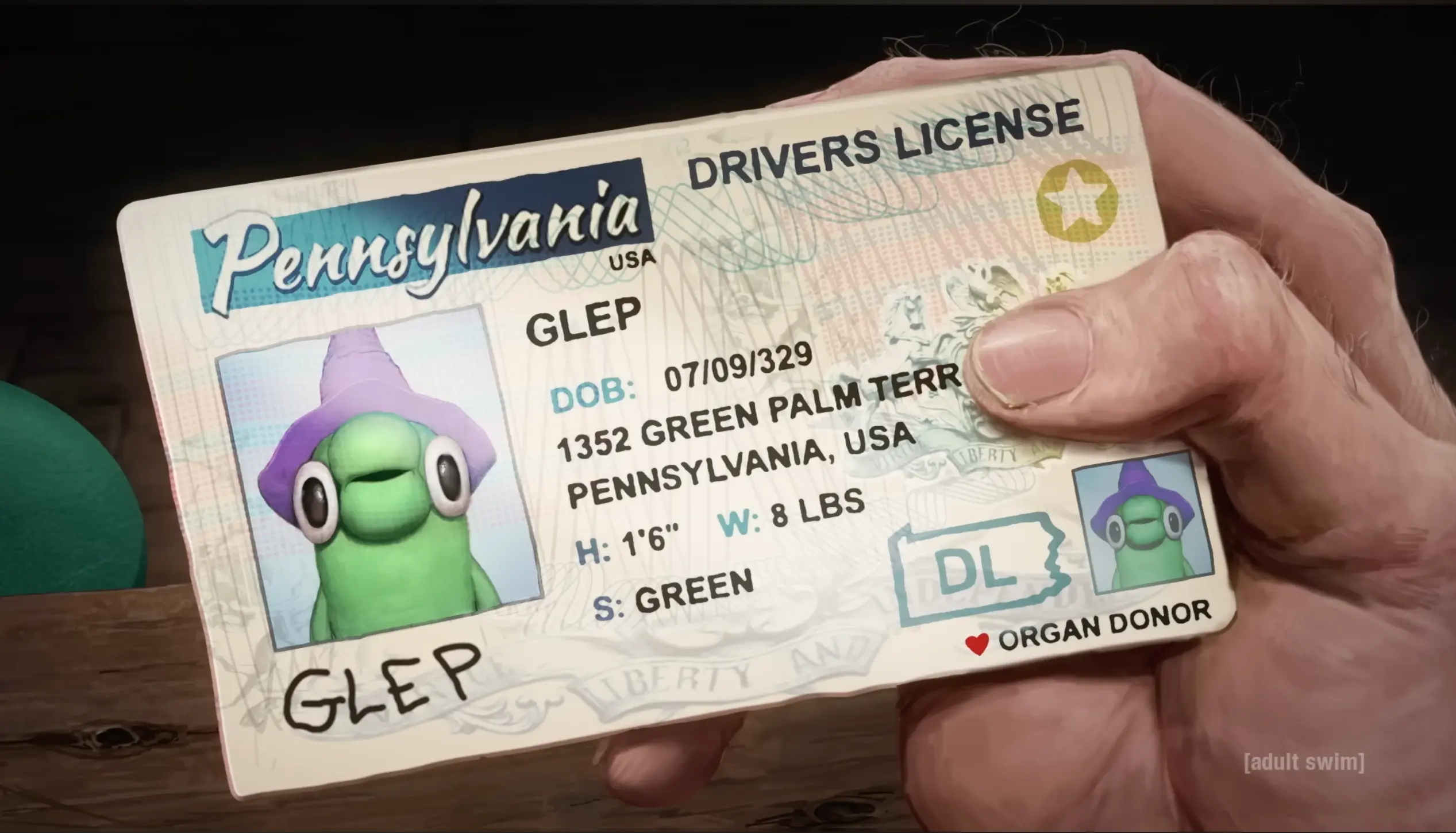 Finally we learn about Glep, one of the characters at Smiling Friends - the green one who sits on the bean bag and spits on the ground and stuff like that. *Growls at you*"