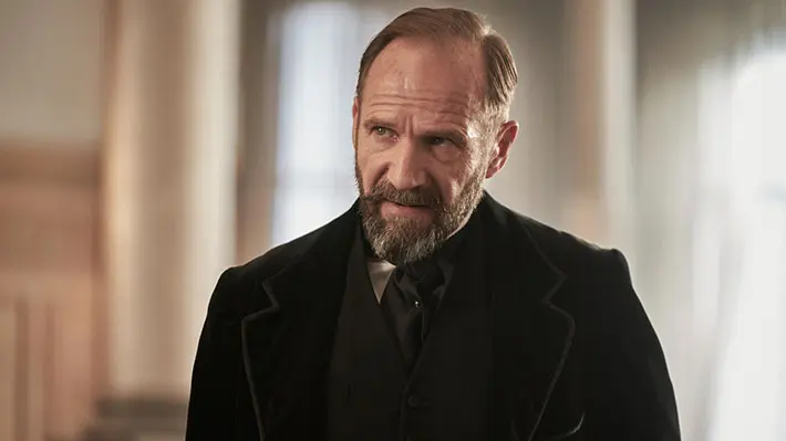 • Ralph Fiennes as Dr. Henry Guthrie: The English actor Ralph Fiennes leads The Choral as Dr. Henry Guthrie, a former organist turned choirmaster, who is central to the controversy in Ramsden. With time spent in Germany practising his art and unfound rumours about his sexuality, Guthrie is treated like an outsider when he returns home, especially since the film is set during a sensitive wartime. Fiennes is one of Britain’s most respected actors, widely known for Schindler’s List, The English Patient, the Harry Potter films as Lord Voldemort, and the James Bond franchise as M. His stage background lends authority and restraint to Guthrie, a character defined as much by silence as by conviction.