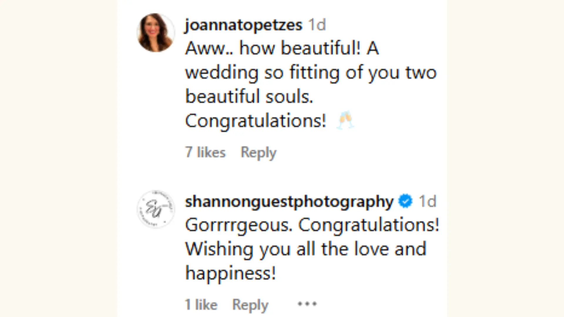 "Aww.. how beautiful! A wedding so fitting of you two beautiful souls. Congratulations! 🥂" one user wrote.